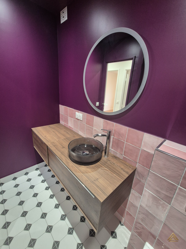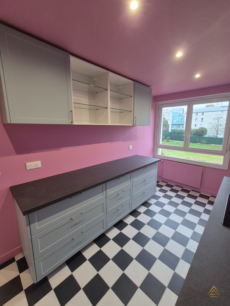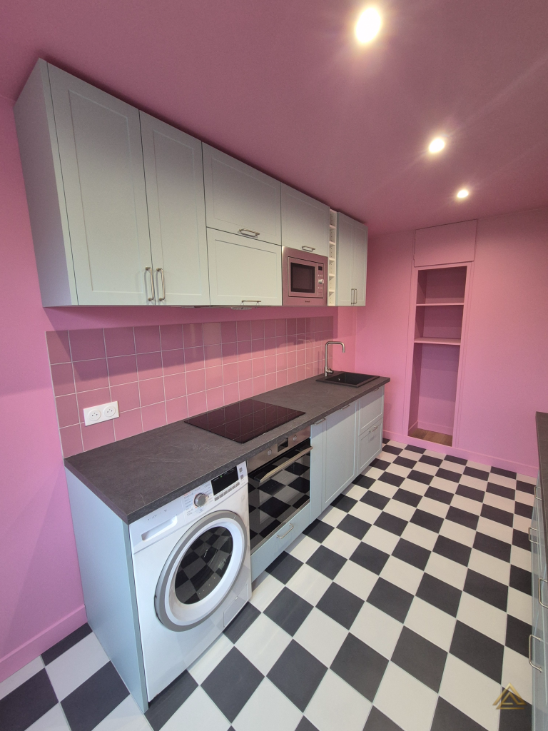 Appartement de 74 m² entièrement rénové, avec salle de bain, cuisine, séjour et chambres repensés. Espaces optimisés, finitions modernes et palette de couleurs contrastées pour un style audacieux et contemporain.